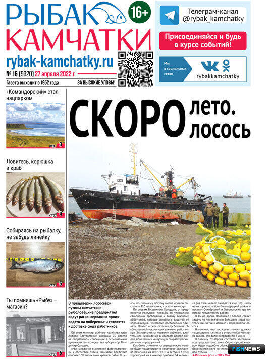 Обзор газеты «Рыбак Камчатки»Выпуск № 16 от 27 апреля 2022 г. |