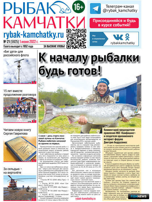 Обзор газеты «Рыбак Камчатки»Выпуск № 21 от 1 июня 2022 г. |