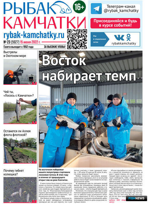Обзор газеты «Рыбак Камчатки»Выпуск № 23 от 15 июня 2022 г. |