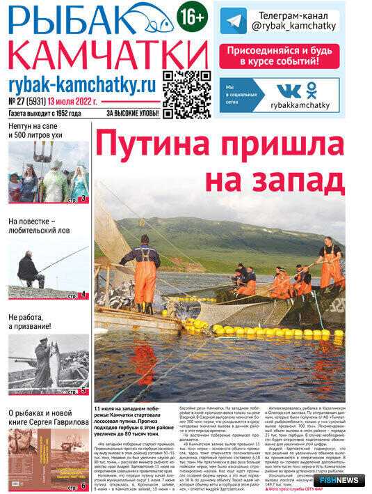 Обзор газеты «Рыбак Камчатки»Выпуск № 27 от 13 июля 2022 г. |