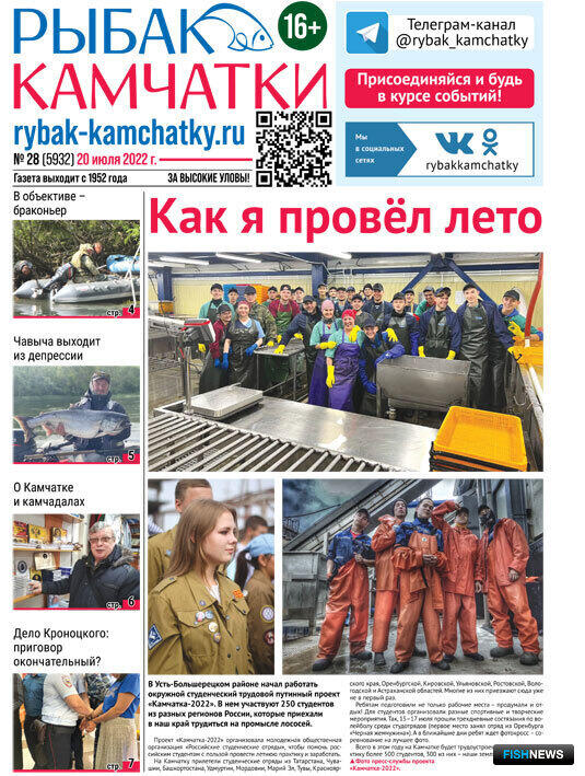 Обзор газеты «Рыбак Камчатки»Выпуск № 28 от 20 июля 2022 г. |