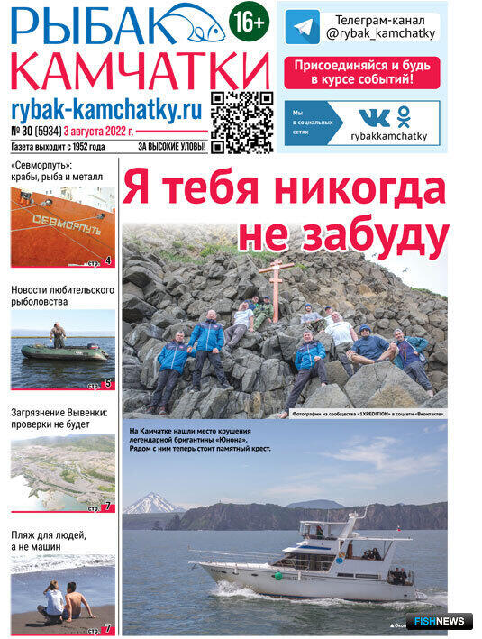 Обзор газеты «Рыбак Камчатки»Выпуск № 30 от 3 августа 2022 г. |