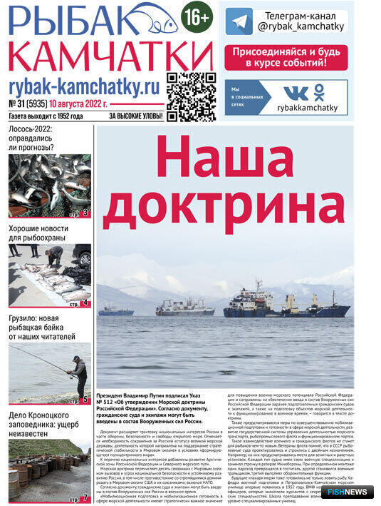 Обзор газеты «Рыбак Камчатки»Выпуск № 31 от 10 августа 2022 г. |