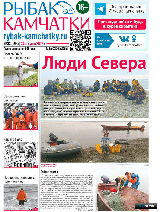 Обзор газеты «Рыбак Камчатки»Выпуск № 33 от 24 августа 2022 г. |