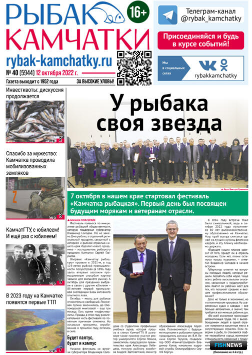 Обзор газеты «Рыбак Камчатки»Выпуск № 40 от 12 октября 2022 г. |