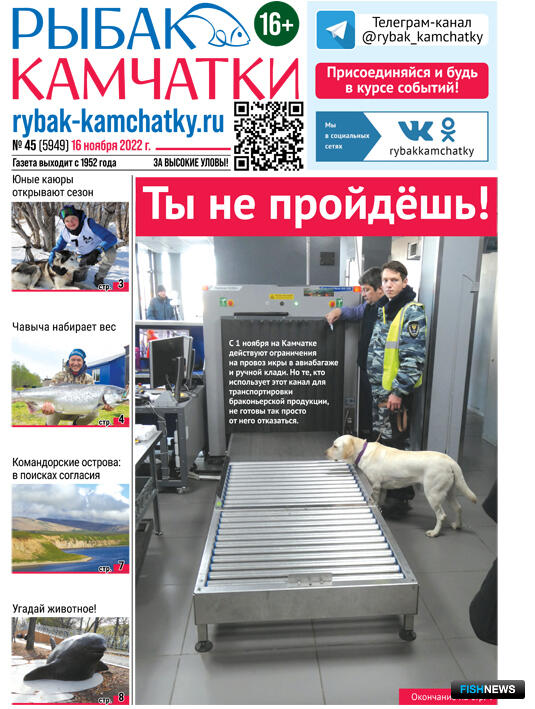 Обзор газеты «Рыбак Камчатки»Выпуск № 45 от 16 ноября 2022 г. |