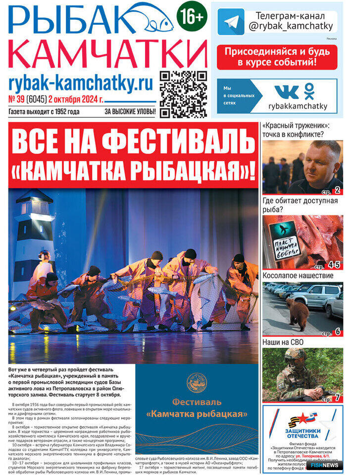 Обзор газеты «Рыбак Камчатки»Выпуск № 39 от 2 октября 2024 г. |