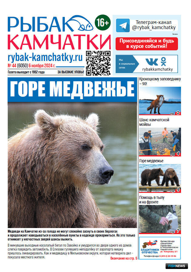Обзор газеты «Рыбак Камчатки»Выпуск № 44 от 6 ноября 2024 г. |