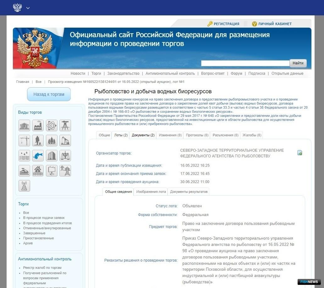 В Псковской области выставили на аукцион два рыбоводных участка — под индустриальную и пастбищную аквакультуру. Заявки принимаются до 17 июня.