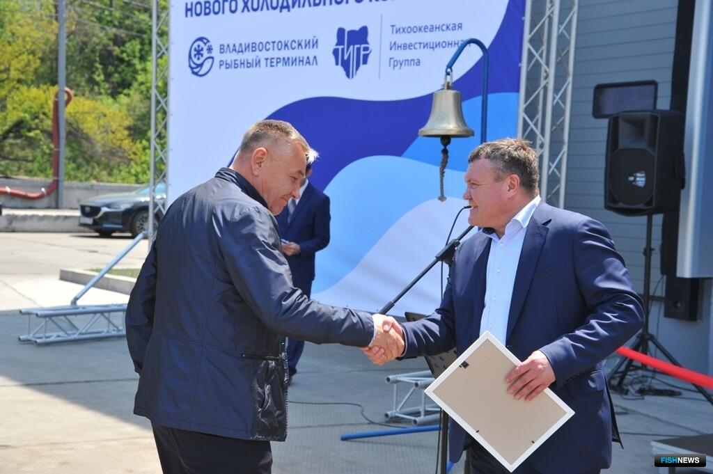 Благодарственные письма вручили строителям, принимавшим участие в реализации проекта, и компаниям — партнерам порта. Затем символическим ударом в рынду новый холодильник открыл генеральный директор ОАО «Владморрыбпорт» Александр Шевченко.