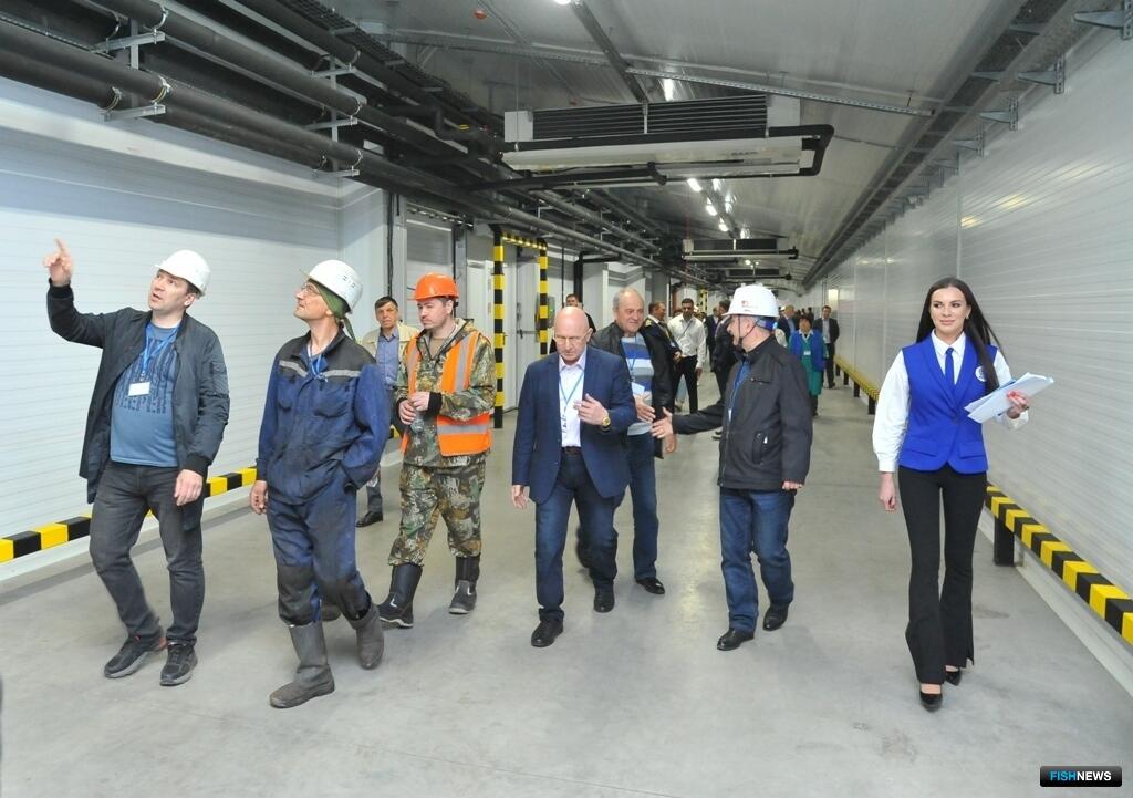 Затем стартовала экскурсия по новому комплексу. Гости смогли лично оценить возможности холодильника и понаблюдать за приемкой первой партии рыбной продукции.
