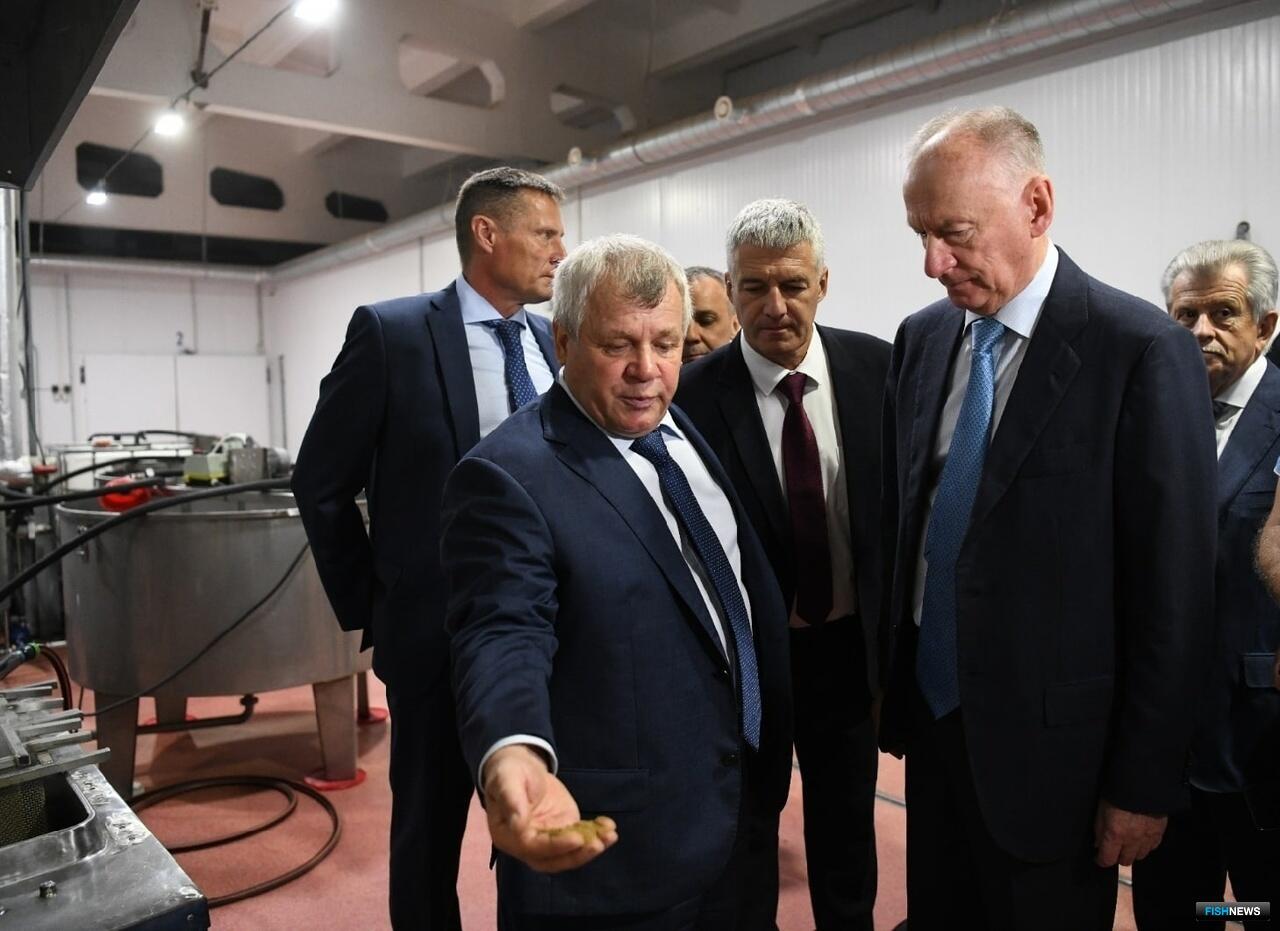 Секретарь Совбеза Николай Патрушев и глава Карелии Артур Парфенчиков осмотрели промплощадку в поселке Берёзовка. Там планируется разместить производство рыбных кормов мощностью 50 тыс. тонн продукции в год.
