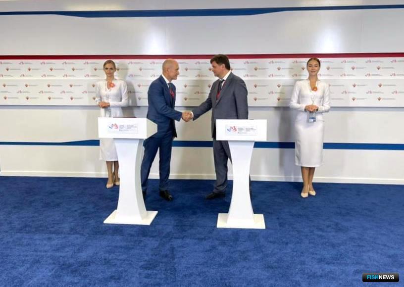 Соглашение о развитии внутреннего рынка рыбопродукции скрепили своими подписями президент АСРФ Алексей Осинцев и председатель Рыбного союза Александр Панин.