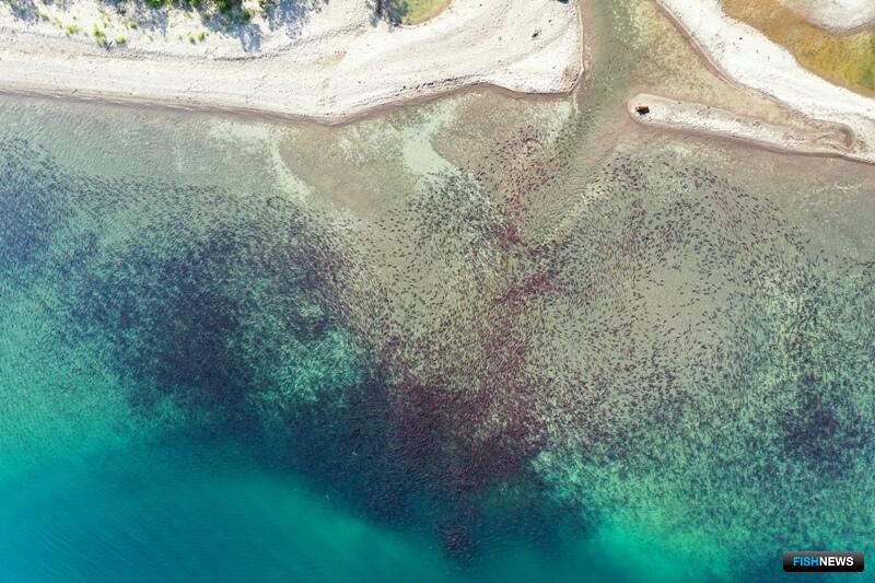 В начале августа ученые с высоты птичьего полета зафиксировали формирование «зон ожидания» в устьях притоков озера — это места, где лососи концентрируются перед заходом на нерест. Размеры скоплений варьировали от нескольких сотен до десятков тысяч особей. Их состав тоже различался: в ряде случаев производители нерки были перемешаны с гольцом, в остальных — состояли только из нерки разной степени готовности к нересту.