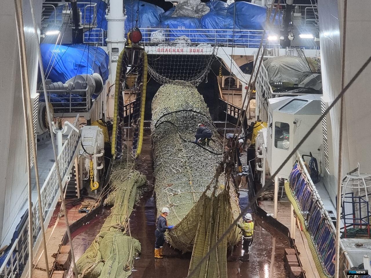 Кроме «Адмирала Шабалина» на промысле находились два судна Евросоюза, в сентябре к ним присоединился российский траулер «Командор». В основном флот работал совместно, что позволяло эффективно икать промысловые скопления на большой акватории.