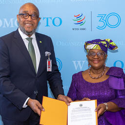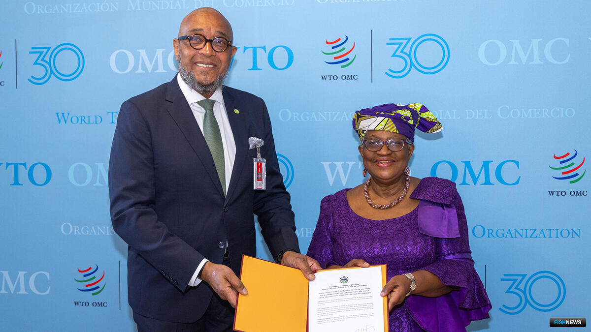 Посол Антигуа и Барбуды Колин Мёрдок передал генеральному директору Всемирной торговой организации Нгози Оконджо-Ивеале официальный документ о ратификации островным государством соглашения по запрету вредоносных рыболовных субсидий.