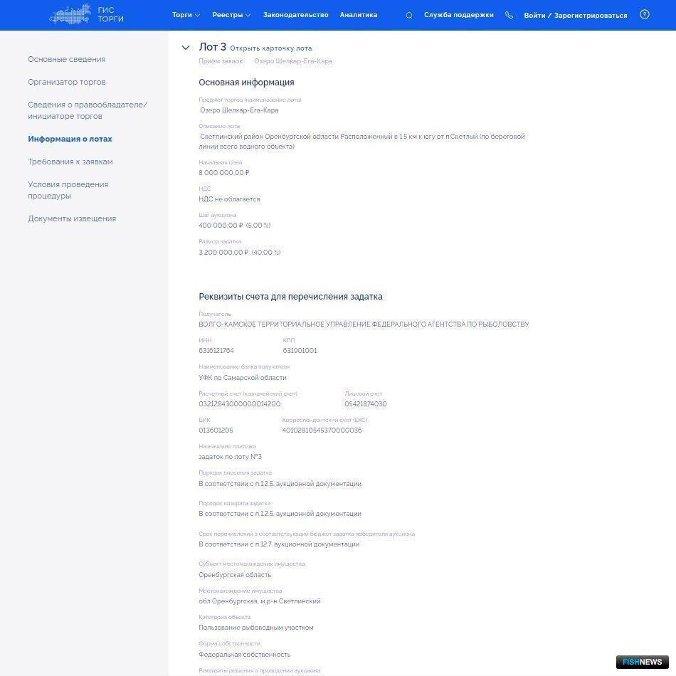 Площадь самого дорогого РВУ, расположенного на озере Шелкар-Ега-Кара, составляет 1000 га. Его начальная стоимость — 8 млн рублей.