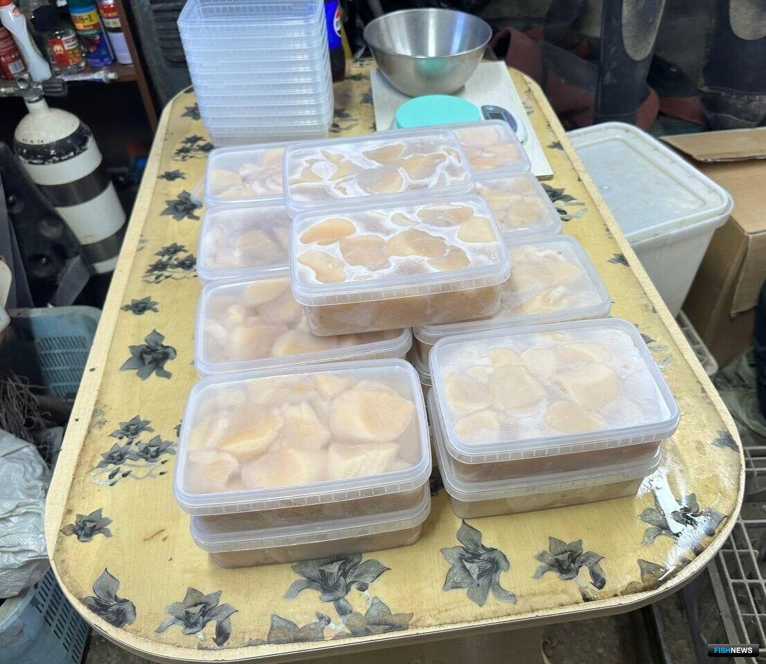 Стражи правопорядка обнаружили в гаражном боксе 847 экземпляров сырого гребешка и 17 кг замороженного. Помимо этого, полицейские изъяли лодки и водолазное снаряжение.