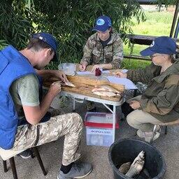 Также ученые исследовали зарастаемость мелководий, мест нереста и нагула промысловых видов на примере Мешинского залива. Специалисты определили плотность, провели проективное покрытие и установили доминантные виды зарослей макрофитов. Для оценки кормовой базы в заросших мелководьях были собраны пробы фито-, зоопланктона и зообентоса, отловлены рыбы по прокошенным участкам в растительности, а также зафиксированы абиотические параметры среды на границе и внутри растительных сообществ: глубина, прозрачность, температура, содержание кислорода, тип грунта.