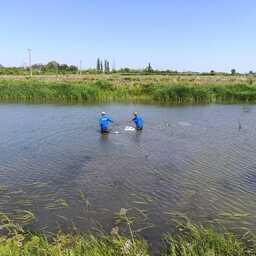Еще одна часть молоди отправлена в собственные выростные пруды филиала для нагула на естественной кормовой базе. Другая группа посажена в специальные погружные садки для подращивания в прудах с возможностью дополнительного кормления.