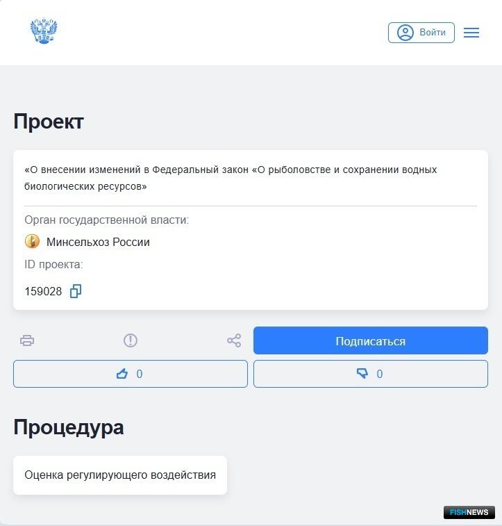 Проект изменений закона о рыболовстве размещен на портале regulation.gov.ru для оценки регулирующего воздействия.