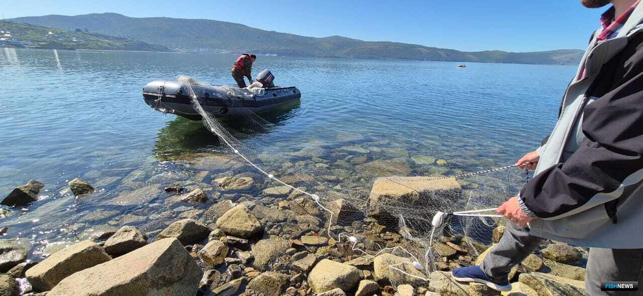 Сотрудники Магаданского филиала Всероссийского НИИ рыбного хозяйства и океанографии вели работы на ежегодных точках сбора биологического материала вдоль побережья от Ольской лагуны до поселка Янский. Для контрольного облова применялись ставные сети с разным размером ячеи, удебные орудия, а также сачки.