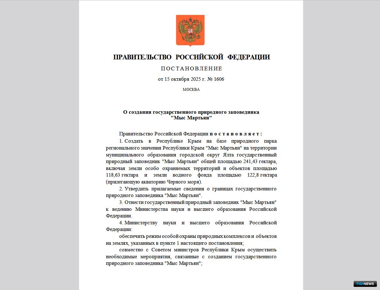 На базе природного парка регионального значения «Мыс Мартьян» в Крыму создадут одноименный государственный природный заповедник. В акватории в составе этой ООПТ обитает более 150 видов морских животных, отметили в правительстве.