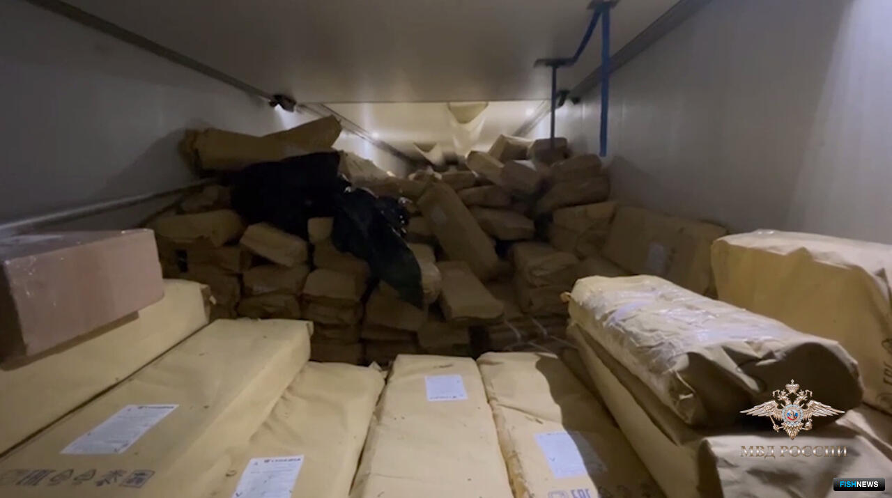 Во время проверки выяснилось, что фура загружена мороженой кетой. Однако среди мешков с рыбой лежал и нелегальный груз — 154 пластиковых контейнера с икрой осетровых общим весом