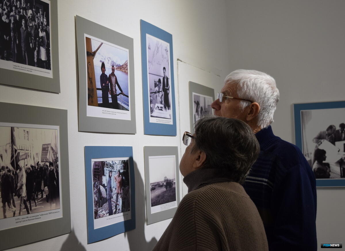 Среди гостей — сотрудники и ветераны ТИНРО, проработавшие в филиале не один десяток лет. Для многих выставка стала возможностью увидеть знакомые лица в зале и на фото, а кто-то на снимках находит и себя.
