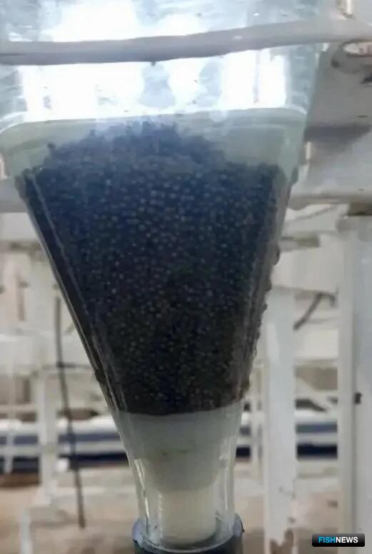 Затем икру аккуратно «сдоили» и заложили в аппараты Вейса. При температуре воды +16…+