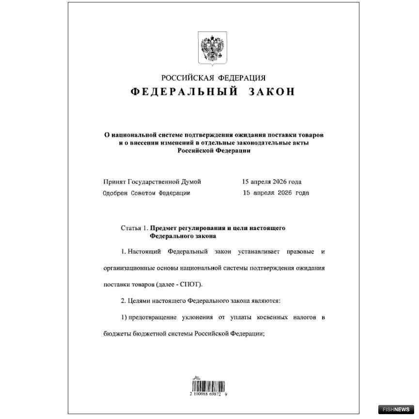 По новому закону, при ввозе на российскую территорию автомобильным транспортом товаров из государств — членов Евразийского экономического союза должен быть сформирован документ о предстоящей поставке товаров и внесен обеспечительный платеж, сообщили Fishnews в пресс-службе президента.