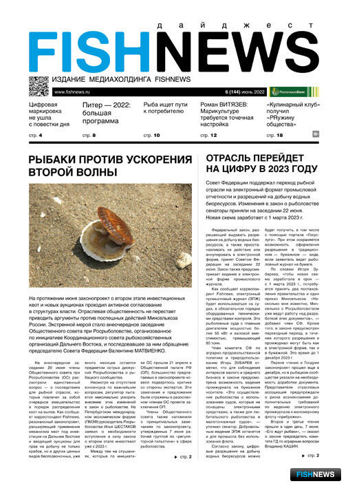Газета Fishnews Дайджест № 6 (144) июнь 2022 г. в pdf-формате во вложенном файле (1,9 Mb).