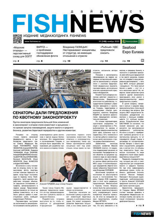 Газета Fishnews Дайджест № 11 (149) ноябрь 2022 г. в pdf-формате во вложенном файле (2 Mb).