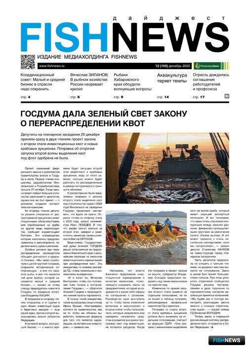 Газета Fishnews Дайджест № 12 (150) декабрь 2022 г. в pdf-формате во вложенном файле (2 Mb).