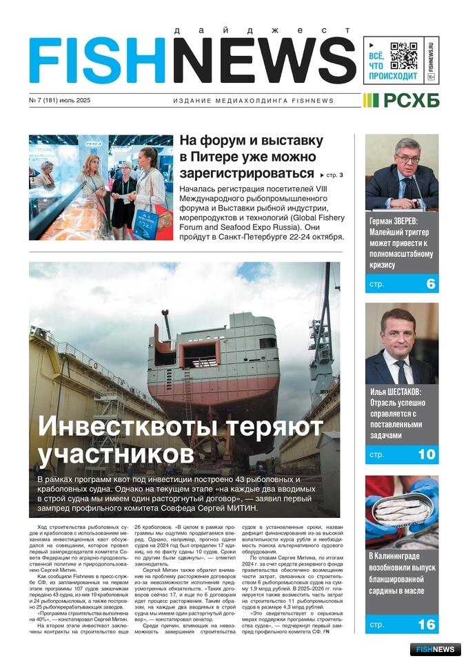 Газета Fishnews Дайджест № 7 (181) июль 2025 г. в pdf-формате во вложенном файле (2,4 Mb).