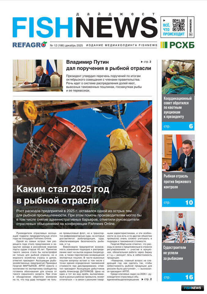 Газета Fishnews Дайджест № 12 (186) декабрь 2025 г. в pdf-формате во вложенном файле (3,3 Mb).