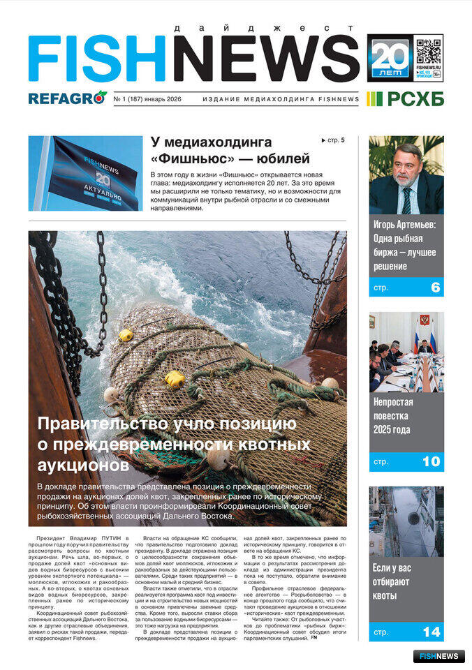 Газета Fishnews Дайджест № 1 (187) январь 2026 г. в pdf-формате во вложенном файле (3,3 Mb).