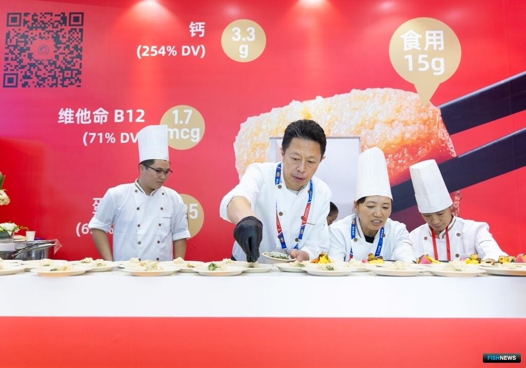 Специально разработанное меню учитывало кулинарные особенности различных провинций страны. За три дня выставки посетителям China Fisheries and Seafood Expo в прошлом году предложили в общей сложности свыше 1000 порций 10 различных блюд с икрой минтая.